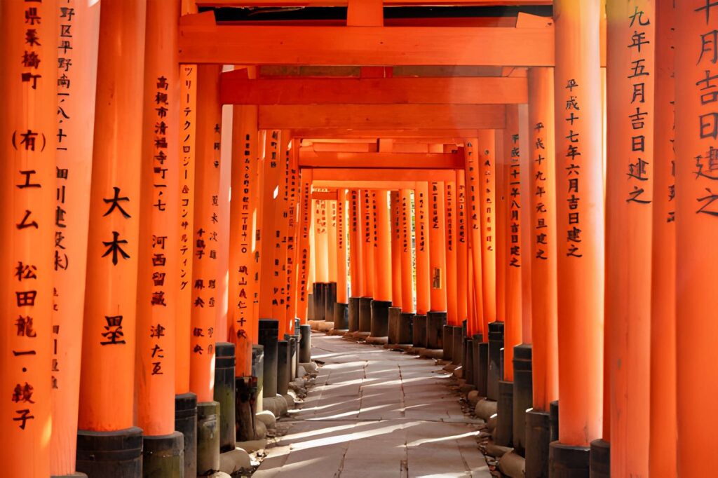 Your first stop in Kyoto should be the world-famous Fushimi Inari Taisha. Known for its thousands of bright red torii gates, this shrine is one of Japan’s most photographed landmarks.
